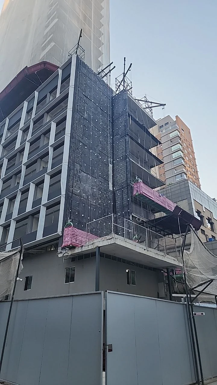 GAFISA - TONINO LAMBORGHINI (SÃO PAULO) Cidade/Estado: São Paulo / SP Status: Obra em andamento Ano da execução: 2025 Área da fachada: 1.170,76m² Tipo de porcelanato: Dansk Cement Graphite Formato do porcelanato: 120 x 270cm