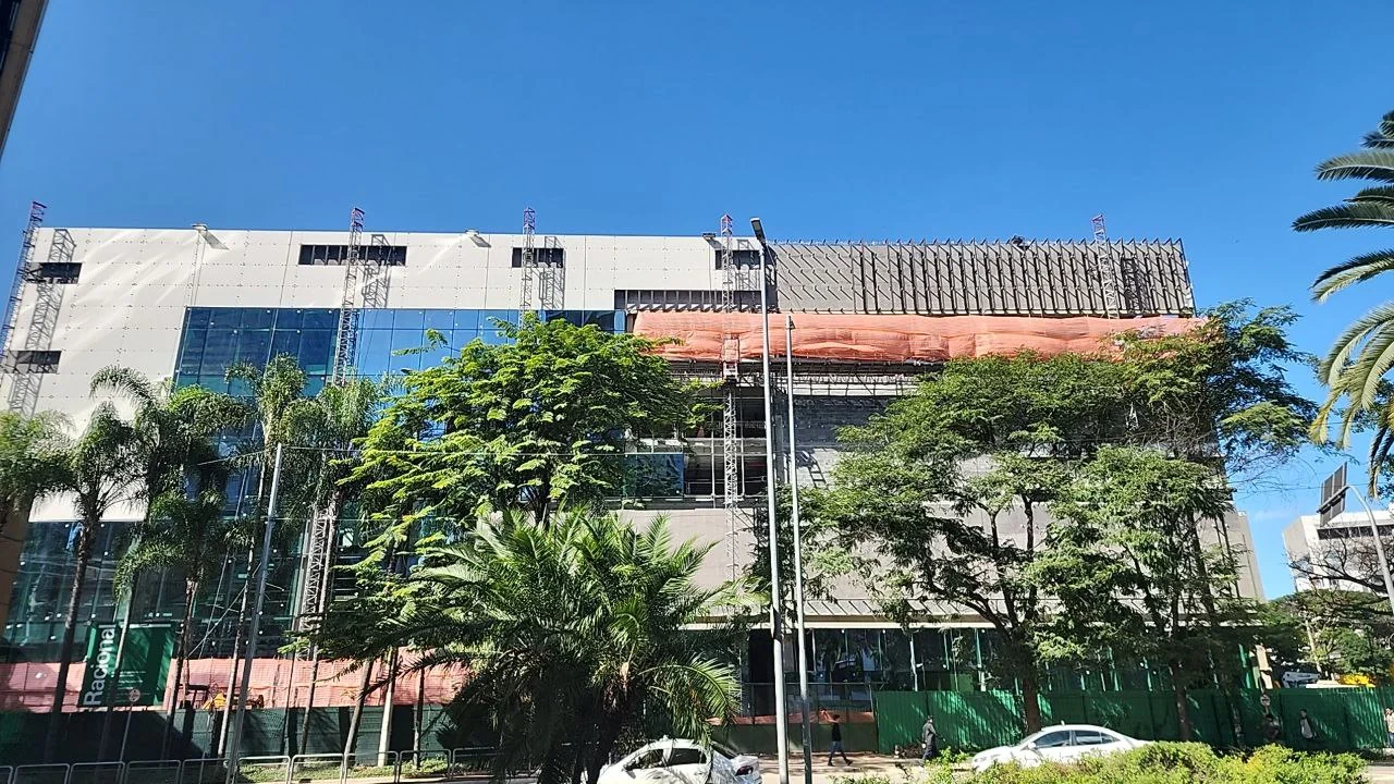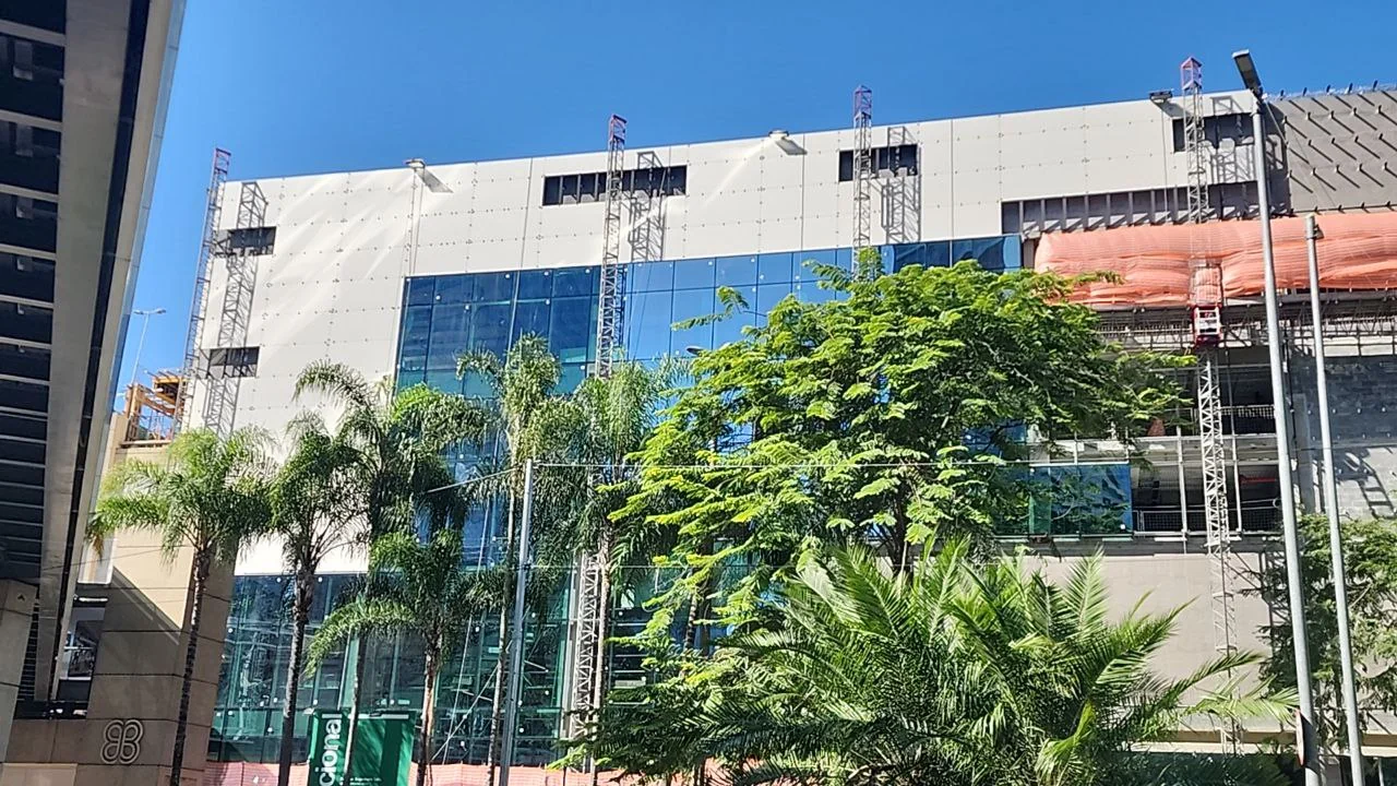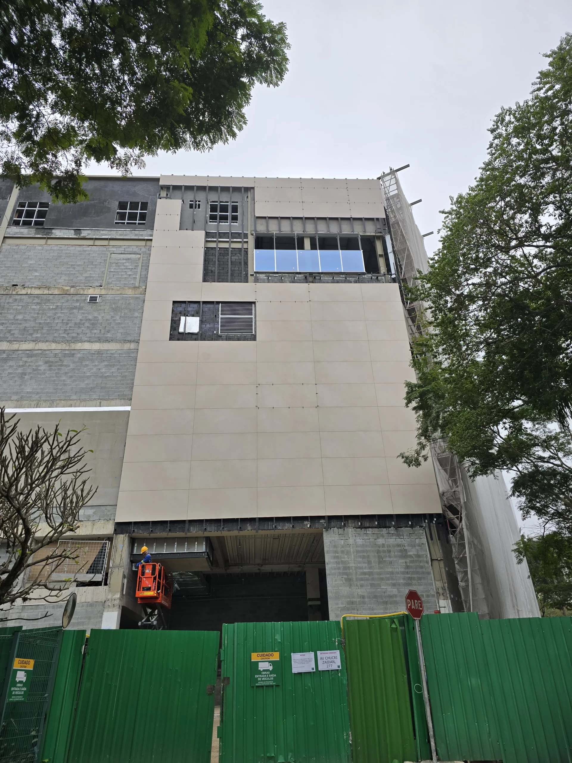 MULTIPLAN - MORUMBI SHOPPING Cidade/Estado: São Paulo / SP Status: Obra em andamento Ano da execução: 2025 Área da fachada: 3.300,00m² Tipo de porcelanato: Lalai Brut e Tropezziene Formato do porcelanato: 120 x 270cm
