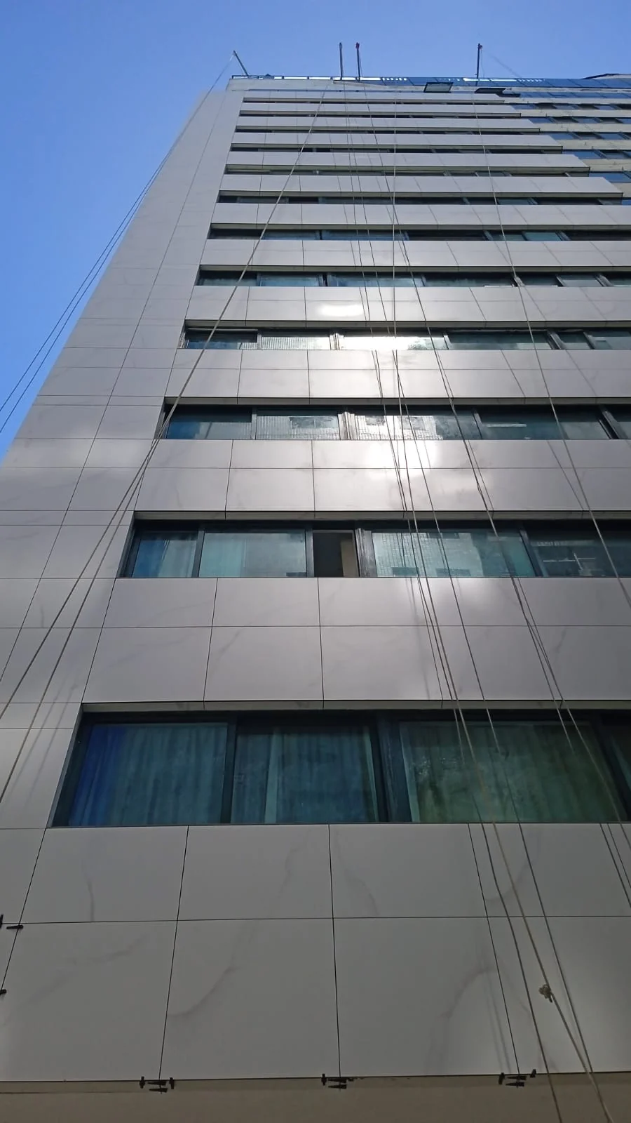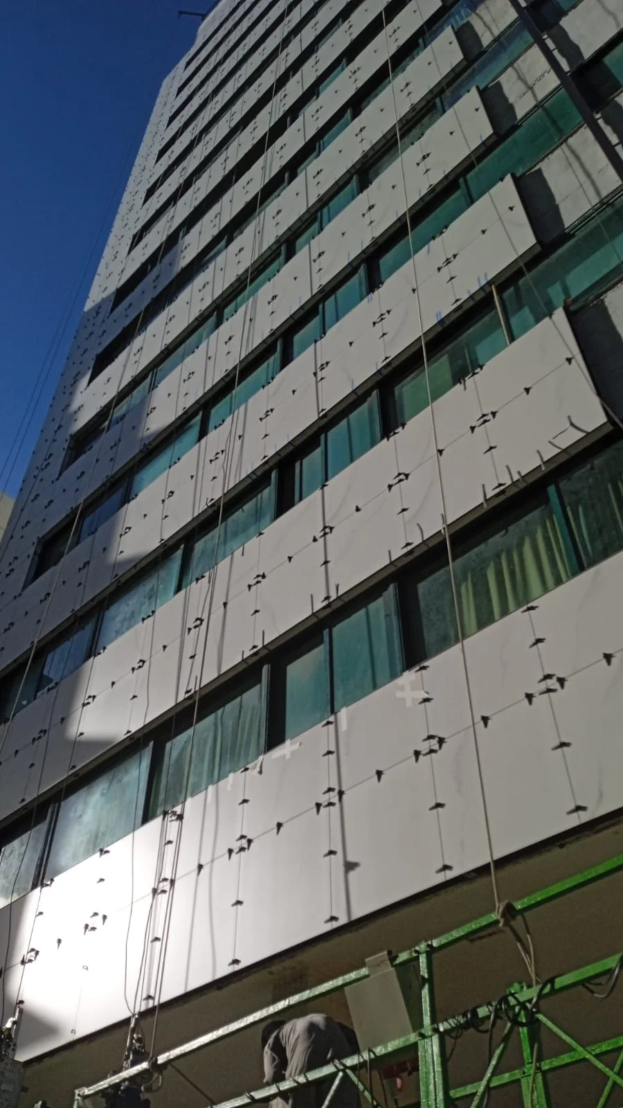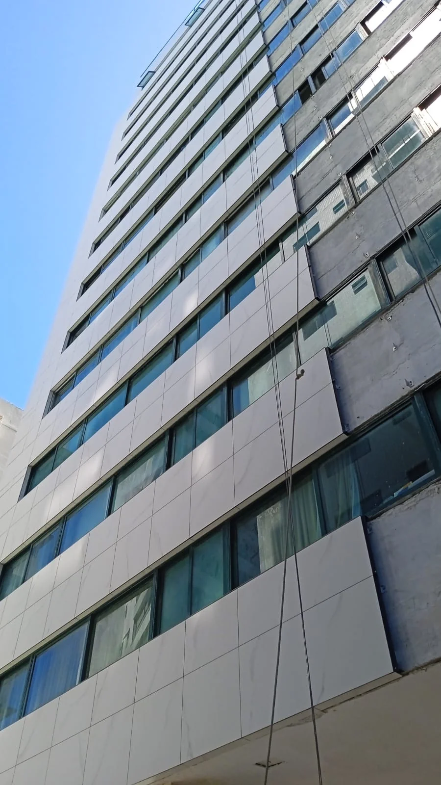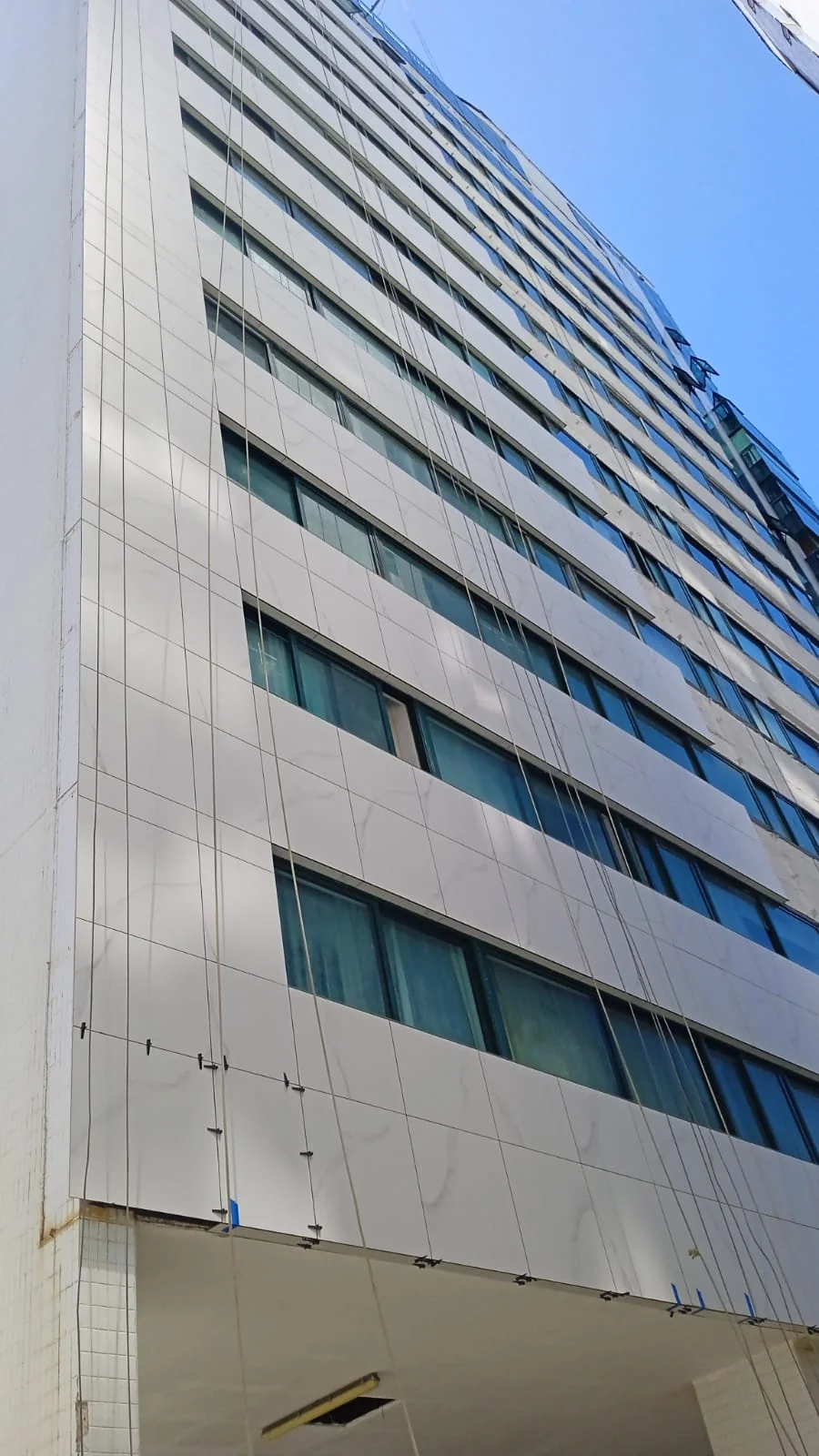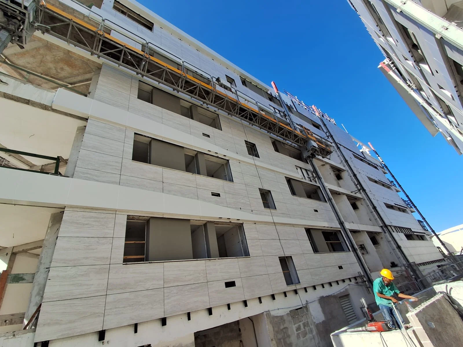CONDOMÍNIO VERONESE Cidade/Estado: Recife / PE Status: Concluído Ano da execução: 2025 Área da fachada: 1.200,00m² Tipo de porcelanato: Portobello Michelangelo Nat Formato do porcelanato: 90x90cm