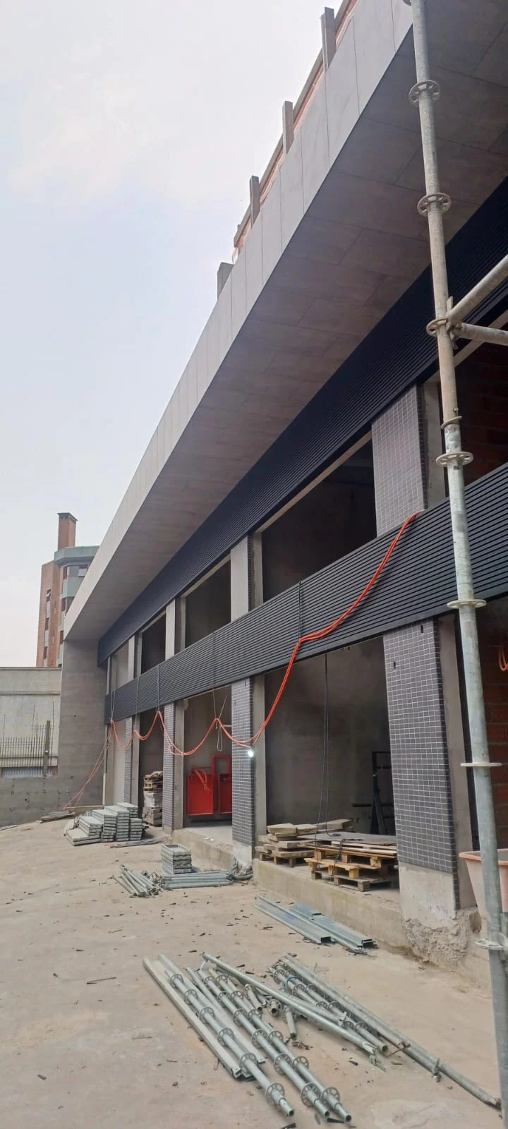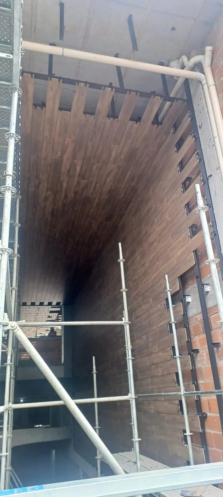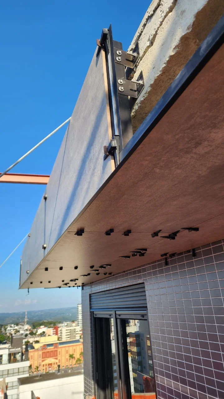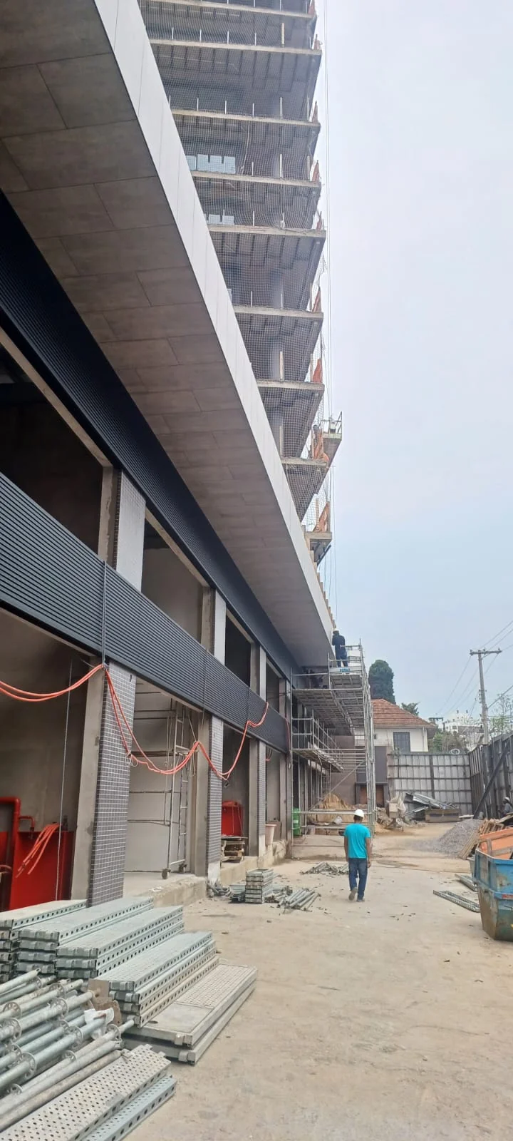 NIMBUS - BOTANIKO Cidade/Estado: Bento Gonçalves / RS Status: Concluído Ano da execução: 2025 Área da fachada: 3.800,00m² Tipo de porcelanato: Portobello Imbuia Clara e Brasilia Concreto Grafite Formato do porcelanato: 60x120 e 20x120cm