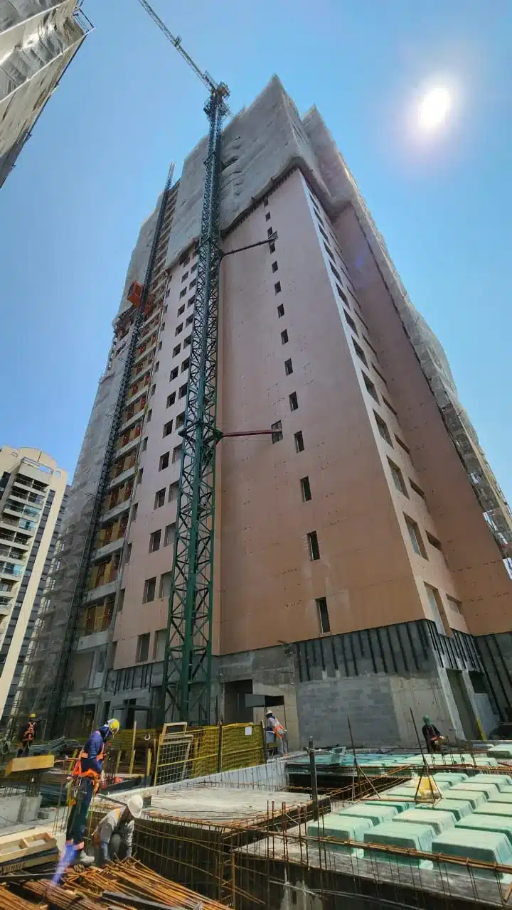 TEGRA - BUENO BRANDÃO Cidade/Estado: São Paulo / SP Status: Concluído Ano da execução: 2025 Área da fachada: 5.000,00m² Tipo de porcelanato: Portobello Ohh Take Clif Formato do porcelanato: 90x180cm